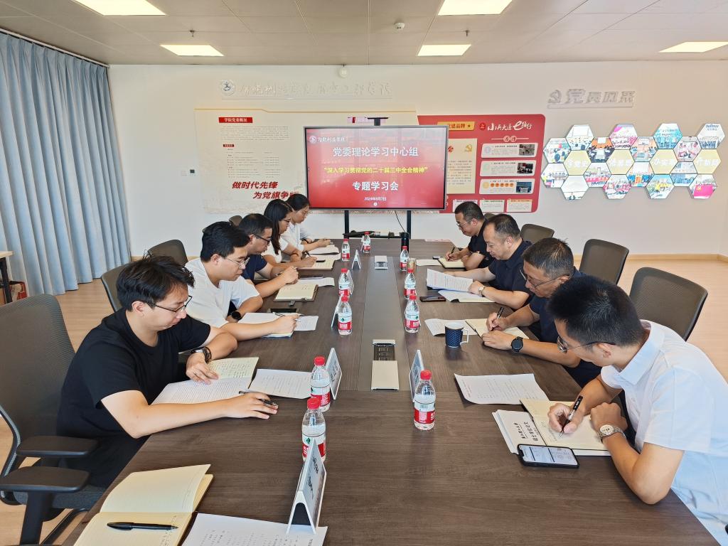 8月7日,智能制造学院召开党委理论学习中心组(扩大)学习会,专题学习贯彻党的二十届三中全会精神。学院党委书记李友富主持会议,学院党政班子、党委委员,全体党支部书记参加。