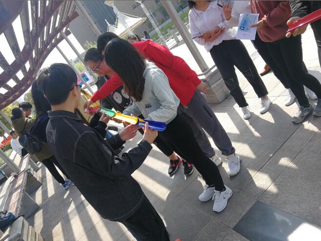 3月31日,机械工程学院举办了以“筑梦启航,幸福情旅”为主题的“夺宝奇兵”活动。经过初期宣传,全校共有100多个小组参赛。活动在上午9:40开始,同学们在湖心亭处领取积分表后,完成有关心理健康的小游戏:千里传球、刺激投篮、又快又稳以及恋爱心理知识竞答。游戏负责人结合同学们参与过程中的表现给出相应分数,而成绩优秀的同学则有机会获得藏宝图,争夺最后的神秘大奖。本次活动现场秩序良好,同学们踊跃参加,气氛活跃。