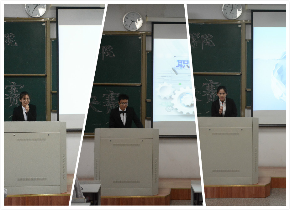 经过初赛、复赛的层层选拔,最终6位选手晋级决赛。决赛分自我介绍、PPT展示、评委提问三个环节进行。选手们通过精心制作的PPT,从自我分析、职业环境分析、职业定位及实施等方面入手,以自身专业特色与兴趣爱好为切入点,具体阐述自己的未来计划和实践措施。在问答环节,各位选手面对评委的提问,也总能急中生智,灵活应对。选手们各具特色的规划作品,丰富流畅的语言表达,博得了现场观众的热烈掌声。