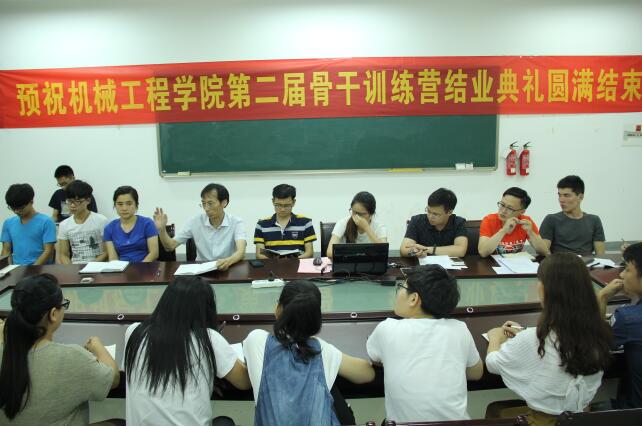 6月15日晚,机械工程学院第二届骨干训练营结业典礼在学院会议室举行。院党总支书记张伟、辅导员、第一届3名优秀学员以及全体成员参加了本次结业典礼。