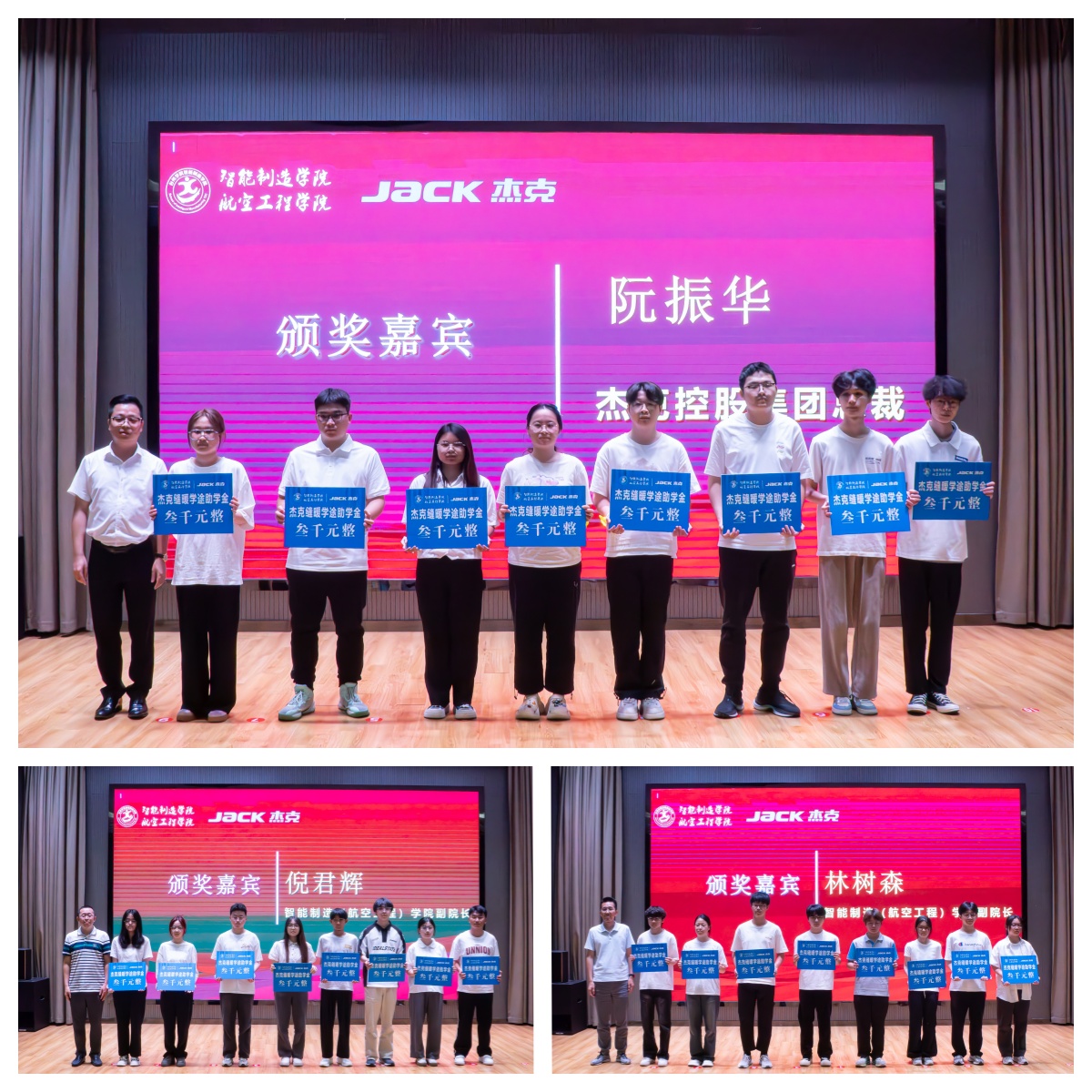 盛典在《我的未来式》演唱中拉开序幕。智能制造学院院长陈鹏展、杰克控股集团总裁阮振华先后致辞。院长陈鹏展在致辞中向杰克集团致谢,回顾2022年双方联合设立“杰克班”,通过“专业基础+真实案例+行业特色”课程体系与校企协同模式培养学生,强调将深化与杰克在多领域合作、构建产教融合生态,并寄语学子融入国家制造强国建设。杰克控股集团总裁阮振华祝贺获奖学生,寄语学生坚守理想、深耕专业、敢于突破、知行合一,并表示杰克将持续与学院深化合作,共建实训基地,推进产学研项目,开展师资交流与人才共育,助力学院高质量发展。