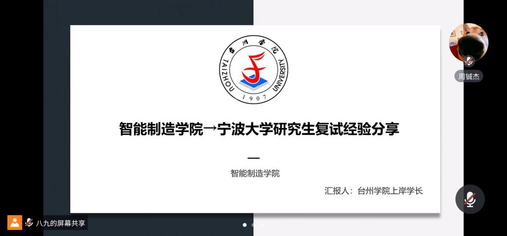 2024年研究生入学考试初试成绩已于近日公布,为助力学院2024届考研学生进一步理清复试备考思路,有效应对即将到来的研究生招生复试,3月5日晚,智能制造学院(航空工程学院)举办了第十一期“研”途有你,一起向未来线上考研复试经验分享交流活动。本次活动由学院辅导员周铖杰主持,优秀校友姜宇新(宁波大学在读研究生)应邀为本次考研学生进行复试指导、经验交流。