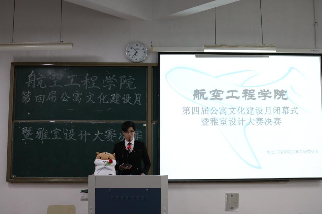 12月27日晚,由航空工程学院公寓自律委员会主办的第四届公寓文化建设月暨雅室设计大赛决赛在2205教室举行。航空工程学院党总支委员董立达和各年级辅导员出席本次活动。