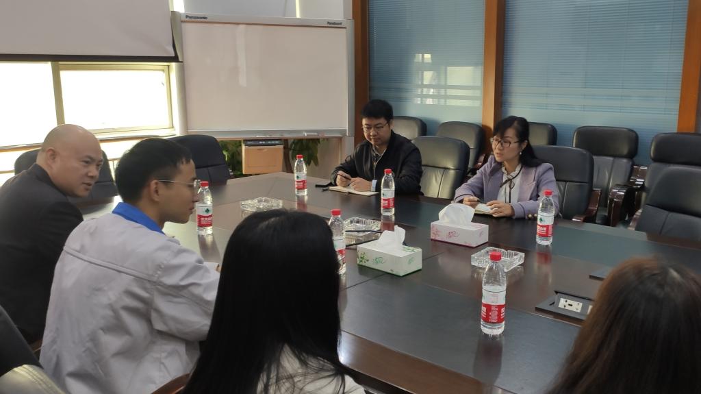 为更好地了解地方企业和关注实习生思想动态,促进大学生就业,2020年12月2日上午,航空工程学院党总支副书记梅娇老师和辅导员钟理韬老师走进浙江百达精工股份有限公司考察访问。百达精工行政人事总监方兵辉、人事经理叶伟杰和航空工程学院大四实习生出席了本次活动。