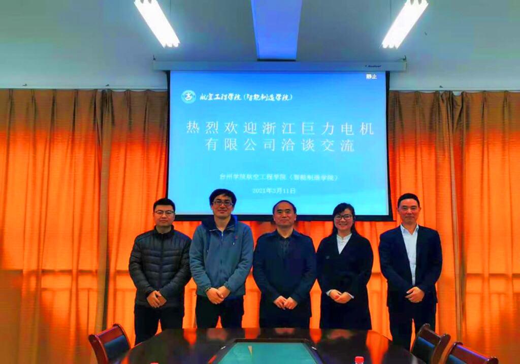 311上午,浙江巨力电机成套设备有限公司总经理叶国强和台州市人力资源服务协会执行秘书长柏余红一行到航空工程学院进行院企合作及人才招聘洽谈,院长张永炬、党总支副书记梅娇、辅导员钟理韬参加洽谈交流。