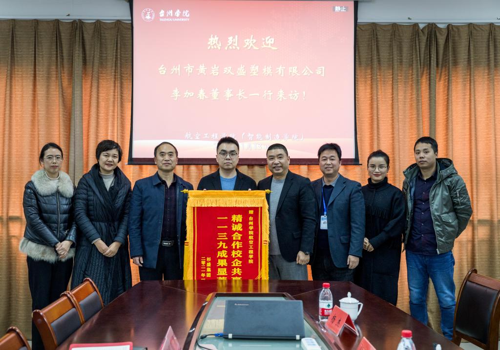1月13日下午,台州市黄岩双盛塑模有限公司董事长李加春一行四人来到航空工程学院(智能制造学院),向参与“1139”科技小分队的金毅博士近一年来所提供的技术支持表示感谢,并就模具产业的关键技术研发开展合作洽谈。院长张永炬主持交流会,书记徐元红、副院长张莉出席会议。