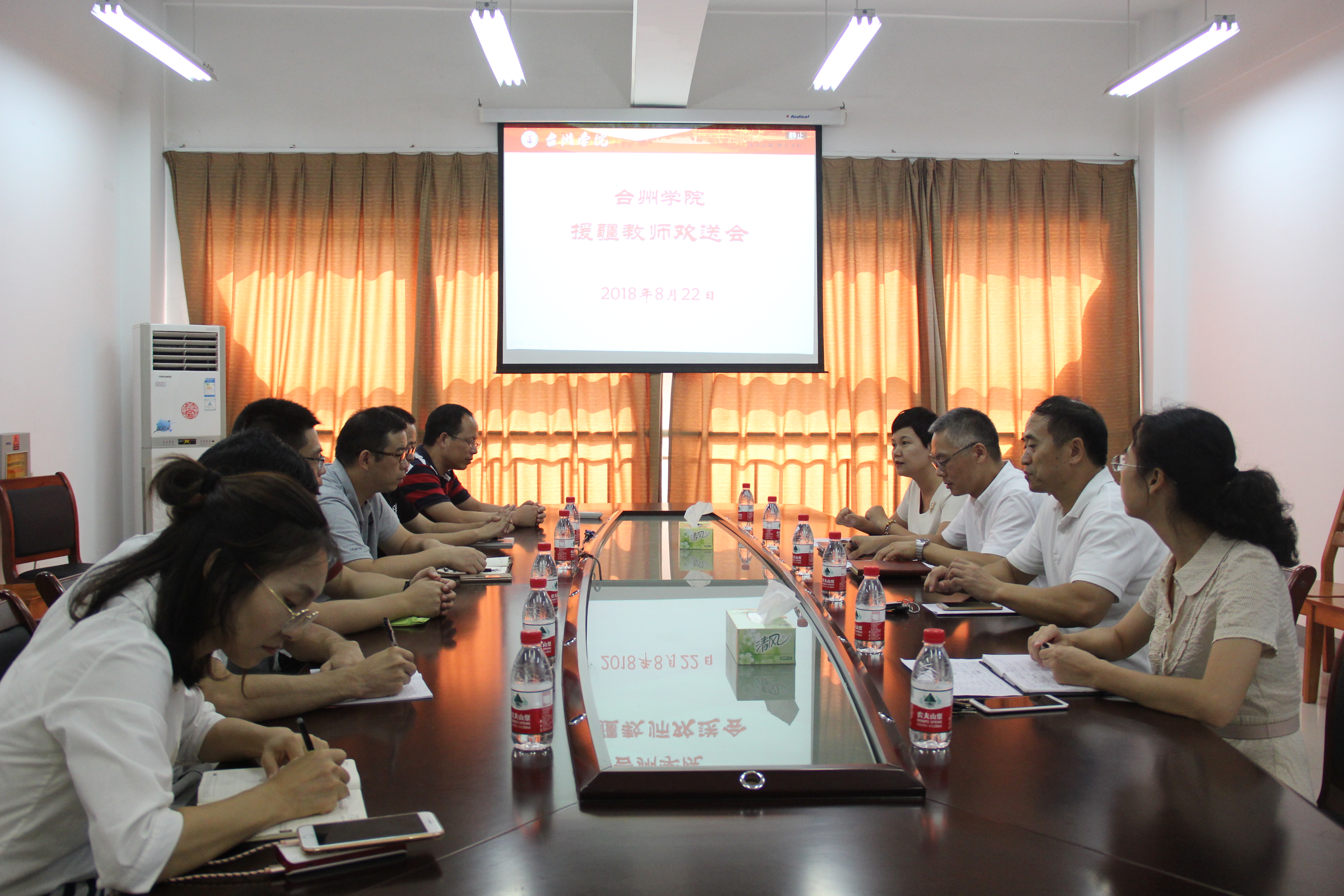8月22日下午,校援疆教师欢送会在椒江校区机电大楼会议室举行,人事处处长杨健国、航空工程学院(智能制造学院)领导班子出席欢送会,学院部分教师参加了欢送会。根据第九批援疆干部人才选派工作文件要求,学院积极开展选派工作。航空工程学院(智能制造学院)金飞翔老师被选派为2018年浙江省援疆支教教师,赴新疆阿克苏地区执行为期一年半的支教任务,并于近日启程。