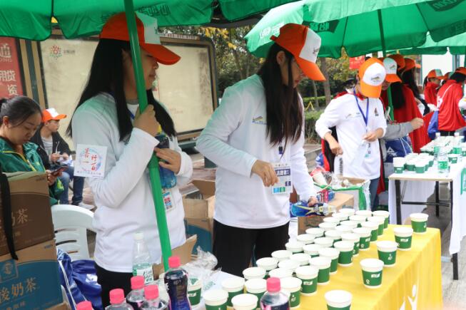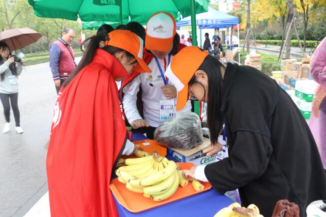 凌晨五点四十左右,志愿者便在校门口集中。在各组组长的带领下,同学们前往各自站点进行场地的清理,并准备好物资和食物补给,他们将香蕉、橘子、葡萄干等分装在纸杯里以便运动员食用,并准备了运动饮料和苏打水。