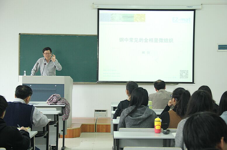 郦剑教授以热处理在机械装备中的应用作为切入点,指出热处理在提高金属材料的工艺性能和机械系统的使用性能方面发挥的关键作用,并围绕着“铁碳合金相图与热处理”、“机械零件失效分析方法与案例分析”和“硬度测试原理和应用”三个方面的内容进行展开。郦教授采用理论和实例相结合的方式进行讲解,并与学生进行了深入的交流与讨论,其幽默的表达赢得了学生们的多次掌声。