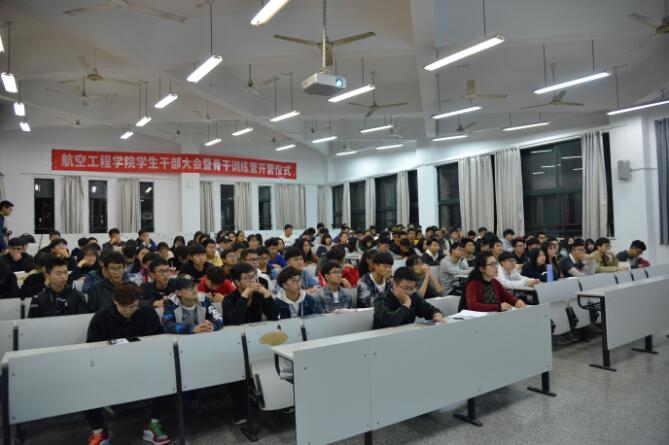 12月5日晚,航空工程学院学生干部大会暨骨干训练营开营仪式在椒江校区2-205教室召开。出席仪式的有学院党总支委员董立达以及各年级辅导员。潘林老师带领学生干部学习了《学生会、研究生会干部自律公约》,并就骨干训练营的活动安排、人员选拔等进行了介绍。据悉,骨干训练营包含“博智”、“提能”、“广行”及“至善”四大工程,包含理论学习、能力锻炼、实践交流和素质拓展等版块,以学年为培训周期,参训学员考核合格颁发结业证书。