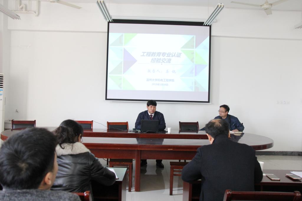 为更加扎实地推进我院2019年机械设计制造及其自动化专业的认证工作,2019年1月17日下午,应我院邀请,温州大学机电工程学院姜锐副院长、机械制造系周晨主任来院做了工程教育专业认证工作的专题报告,全院教工参加。培训会由张永炬院长主持。