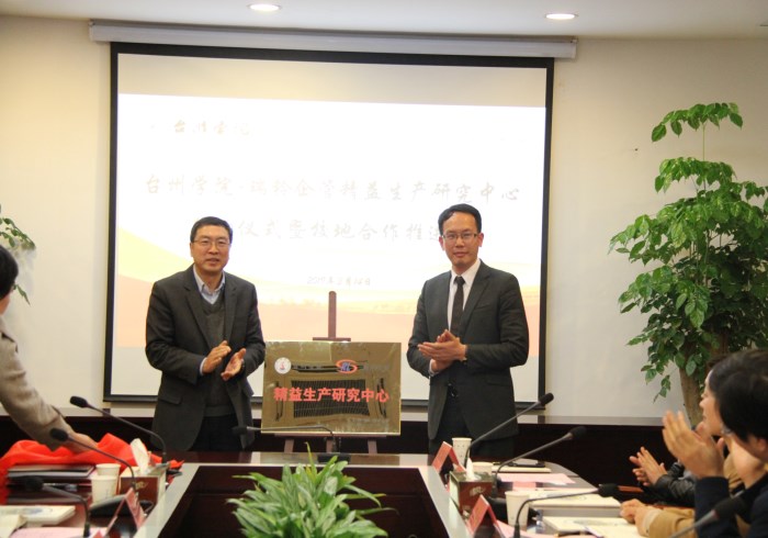 3月14日下午,台州学院与浙江瑞铃企业管理股份有限公司联合举办“台州学院-瑞铃企管精益生产研究中心”签约仪式暨校地合作推进会。出席嘉宾有台州市高新区管委会、市经信局、市信息化促进会负责人和瑞铃企管领导等,副校长赵小明出席并讲话。智能制造学院院长张永炬主持推进会。