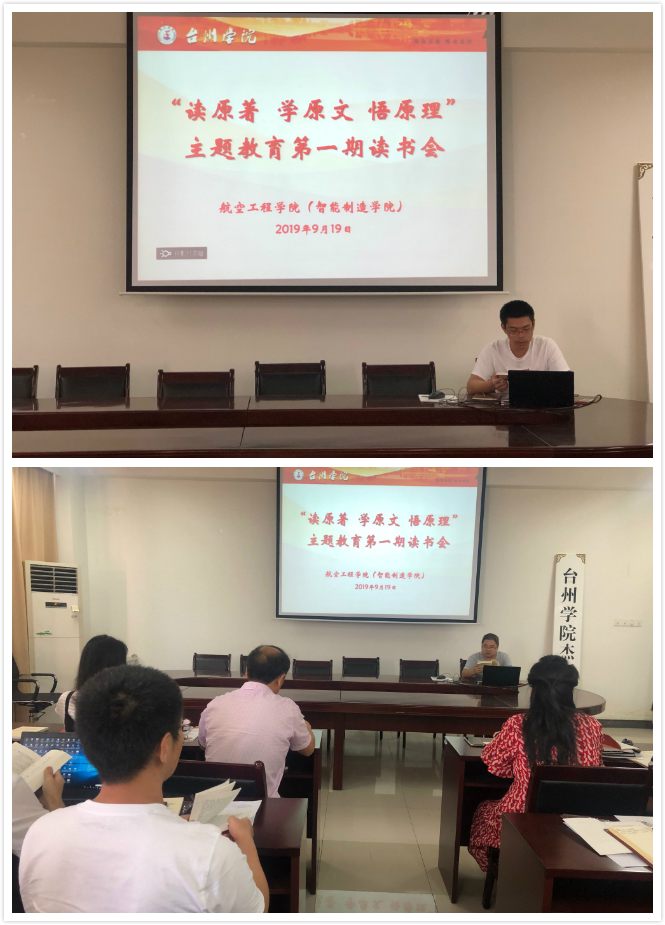 9月19日下午,航空工程学院举行“不忘初心 牢记使命”主题教育第一期读书研讨会,活动以“读原著 悟原理”为主题,深入学习了《中国共产党章程》、《习近平新时代中国特色社会主义思想学习纲要》相关篇目,结合学院学习工作实际,开展交流研讨。