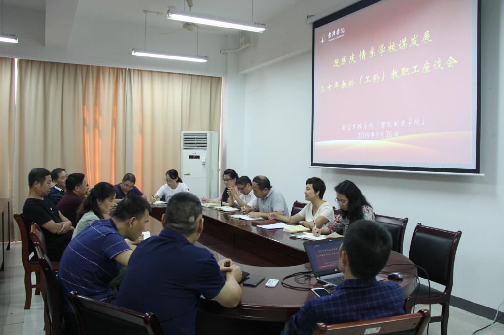 为庆祝中华人民共和国成立七十周年,分享学校几十年来发展成果;针对不同党派收集意见与建议,开展“不忘初心 牢记使命”主题教育活动专题调研。9月26日下午,航空工程学院在B号楼201会议室召开老教师座谈会,学院领导班子、8位三十周年教龄(工龄)教职工参加座谈会,座谈会由党总支书记徐元红主持。