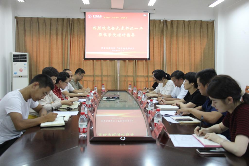 金先龙在听取学院汇报后,充分肯定学院对于专业性社团参加专业比赛的政策扶持,他表示,要加强专业类社团建设,明确社团的发展方向,通过专业竞赛提升师生的教学与科研能力。