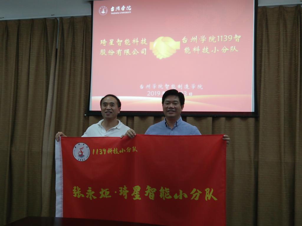 10月23日,琦星智能科技服务股份有限公司董事长林子春一行就智能制造学院院长张永炬领队,组建的“台州学院1139智能科技小分队”合作对接来院指导交流。副校长赵小明出席并致辞,智能制造学院领导及学院教授、博士组建的团队成员参加对接合作仪式。