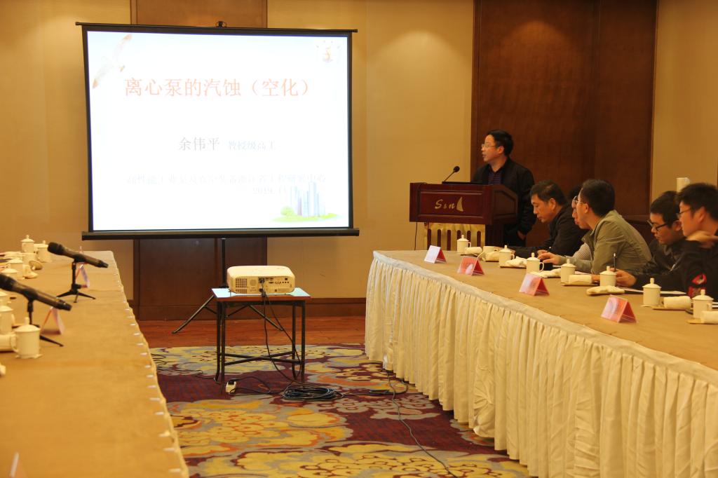 在流体机械专题学术报告会中,中心技术骨干王正初老师作了题为“CFD技术及其在离心泵设计中的应用”的报告,介绍了CFD技术的基本概念、分析过程、重要意义、优缺点等,并介绍了课题组近几年利用CFD技术进行水泵设计的四个案例,对利用CFD技术从空化、性能模拟和流场分析等角度开展300LDTN-200立式筒带泵的研发进行了详细的介绍;安世亚太科技公司技术总监俞斌根作了题为“安世亚太泵全生命周期解决方案”的报告,介绍了工业互联时代下泵全生命周期的理解,提出了安世亚太在工业泵LCC各个阶段、各个方面的解决方案,并分享了多个案例;北京海基科技公司技术总监黄艳芬作了题为“工业泵优化设计技术方案”的报告,对Cfturbo、Simeric、OASIS等软件的功能进行了介绍,并分享了三款软件在水泵设计中的详细应用案例,现场演示了部分结果。余伟平教授级高工作了题为“离心泵的汽蚀(空化)”的报告,介绍了流程泵中汽蚀(空化)研究的意义、汽蚀与泵的性能参数及边界条件的关系、汽蚀问题的解决方法和措施、高汽蚀性能工业流程泵的水力模型库、防止泵发生汽蚀稳定可靠运行的措施等内容。