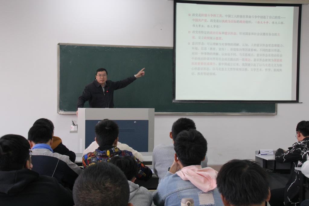 课堂上,赵小明副校长围绕着党的十九届四中全会精神,对坚持和完善中国特色社会主义制度、推进国家治理体系和治理能力现代化的重大意义和总体要求及十三个“坚持与完善”进行了基本解读。重点在“坚持和完善党的领导体系,加强党的纪律”方面为大家作详细讲解,他从党的政治纪律、组织纪律、廉洁纪律、群众纪律、工作纪律、生活纪律六个方面为大家讲解了党的纪律处分等相关知识。同时结合自身的研究方向,向大家介绍了人工智能的发展趋势,勉励大家要学好专业知识,努力培养创新意识,提高科技创新能力,不但要做党纪国法的忠实执行者,更要做一名自强者。