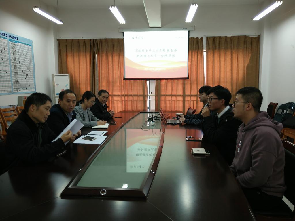 11月28日, 我校与浙江理工大学、浙江科技学院联合培养的18级硕士研究生开题答辩报告会在智能制造学院会议室进行。答辩导师组由智能制造学院张永炬教授、夏如艇教授、张莉、李军和倪君辉副教授, 医化学院吴建波教授等相关专业硕士生导师组成。我校与浙理工、浙科院联合培养的18级硕士研究生参加开题答辩汇报。