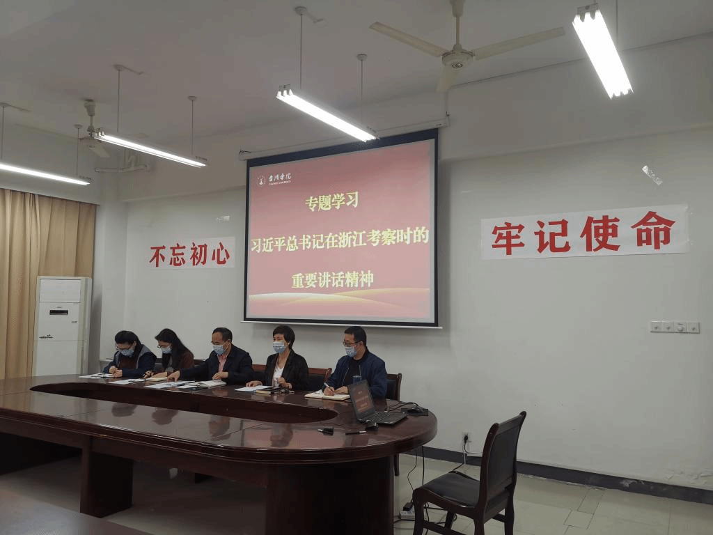学院党政领导班子还分别就科研、教学以及学生管理各块作出部署。会后,党总支书记徐元红带领教职工专题学习习近平总书记在浙江考察时的重要讲话精神等内容。