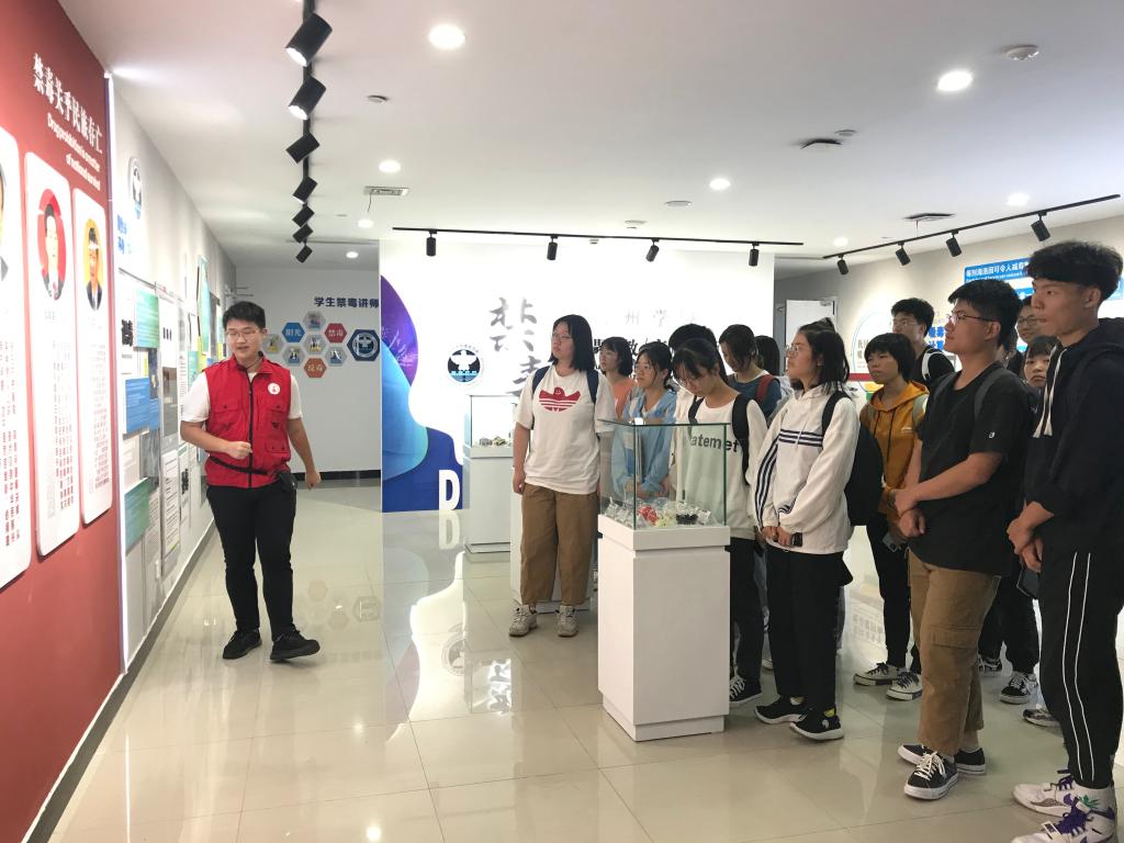 10月12日一早,台州学院禁毒主题教育展厅内热闹非凡,航空工程学院2020级智能制造专业40名同学在讲解员杨一帆同学带领下,认真走访了展厅的各个板块。这是我校禁毒主题教育展厅自9月底启用以来迎来的首批客人。