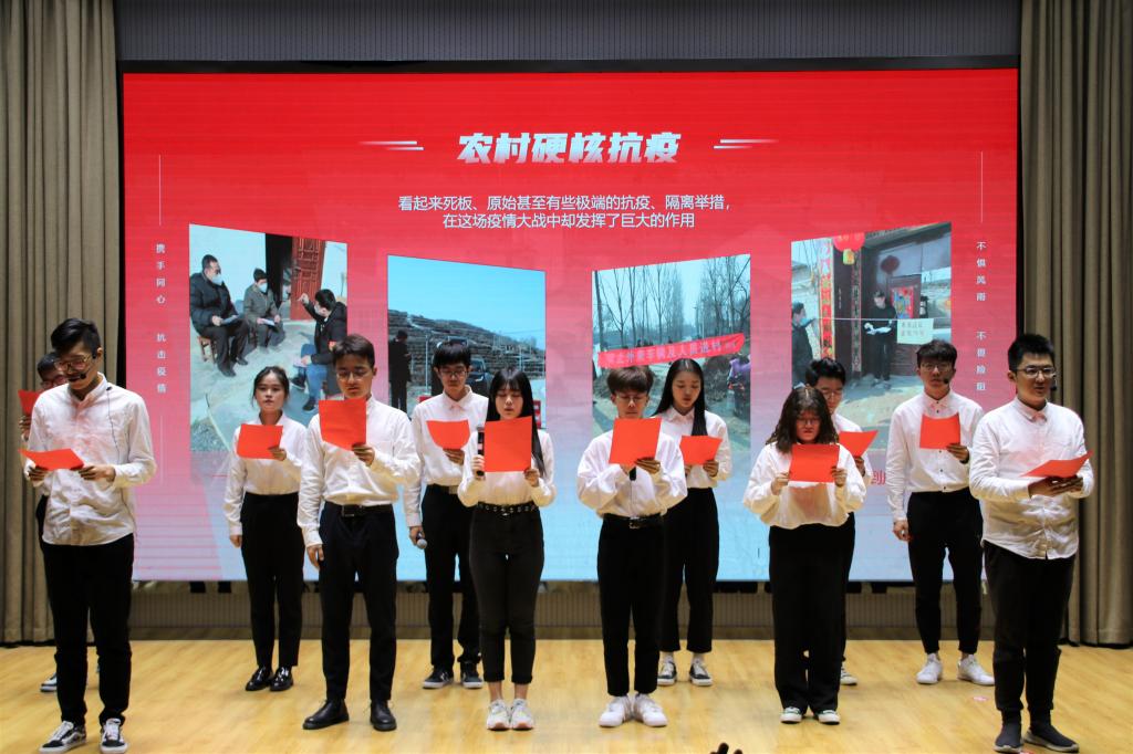晚会在劲爆的说唱《个人简介》中拉开了序幕,舞蹈《随心所欲》点燃了晚会的气氛,围绕抗疫主题,20机械1和杰克班创作的小品《口罩风波》致敬默默支援武汉的抗疫英雄们,学生党支部朗诵的《寒冬的风,春天的雨》讲述我国可歌可泣的抗疫战记,旋律悠扬的歌曲《我的名字》令人陶醉,Topgirl舞蹈社和20机械2班共同演绎的《哎舞呦舞》抓住全场的眼球,情景剧《爸爸妈妈》、光影戏《匆匆岁月》从不同角度表达出大学生活,引得现场连连喝彩,晚会在团学会的舞蹈《TO YOU》中完美落幕。