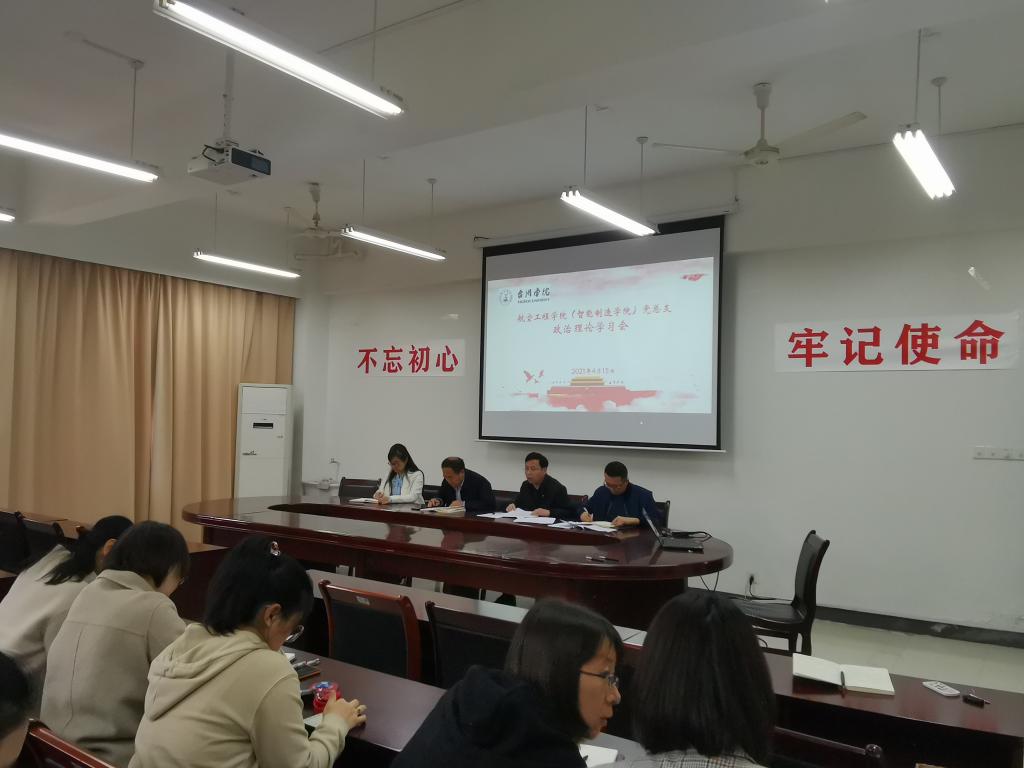 4月15日下午,航空工程学院在B201会议室开展政治理论学习会。党总支书记郑建华主持并带领大家学习,学院全体教职工参加学习。