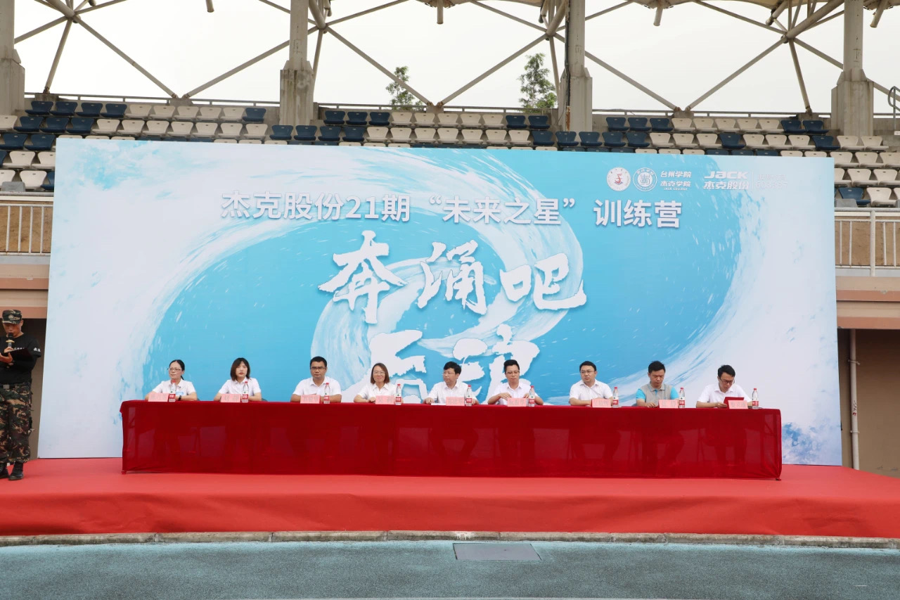 7月4日上午,航空工程学院与杰克股份公司联合举办未来之星训练营在田径场正式开营,航空工程学院党委书记郑建华、杰克股份副总经理吴利、人力资源部总监兼营销总政委吴敏辉等领导和嘉宾出席,训练营学院300余人参加。