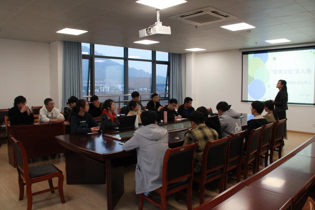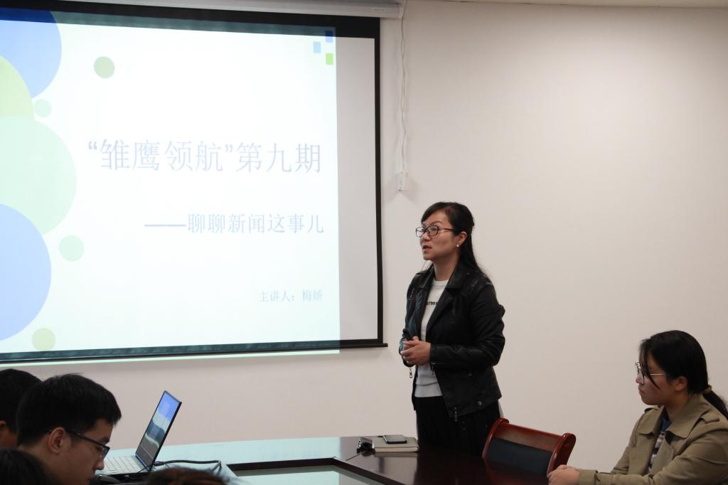 11月18日下午,航空工程学院(智能制造学院)在航空楼S501教室举行了“雏鹰领航”第九期“聊聊新闻这事儿”培训活动。学院党总支副书记梅娇担任主讲嘉宾,学院团学会宣传部全体成员及部分其他部门成员参加。