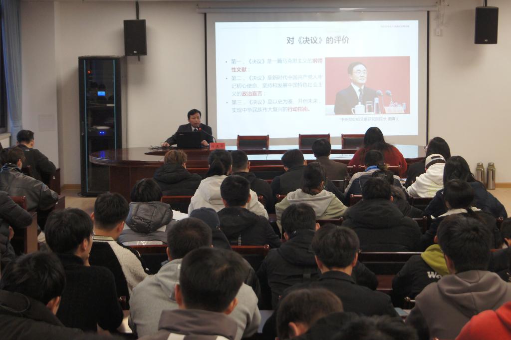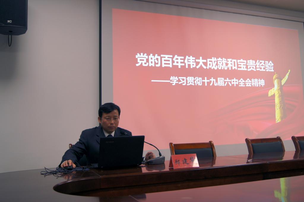 党课围绕学习《中共中央关于党的百年奋斗重大成就和历史经验的决议》精神,党委书记郑建华向同学们重点解读了十九届六中全会总结百年奋斗重大成就和历史经验,详细分析了各个历史时期的任务与成就;他指出,一百年来,中国共产党忠实践行初心使命,团结带领全国各族人民在中国这片广袤的土地上绘就了人类发展史上波澜壮阔的壮美画卷。郑建华在授课中强调,要深入领会全会提出的重要思想和重大论断,特别是“两个确立”对新时代党和国家事业发展、对推进中华民族伟大复兴历史进程的决定性意义,要切实把思想和行动统一到全会精神上来。
