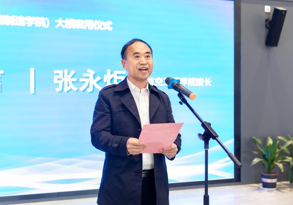 陈光亭代表学校向航空大楼的正式启用表示祝贺。他表示,航空大楼设施完善、布局合理、造型美观,是培养高素质人才的重要桥头堡,航空学院全体师生要以新大楼启用为契机,深入践行“三个共同体”理念,抓住契机,勇于腾飞;深入践行“以学生为中心,以教师为主体”理念,服务师生成长成才;深入践行“守土有责、守土负责、守土尽责”的关键点,牢牢守住安全底线。新的大楼是新的起点,更是新的征程,他希望航空学院树牢“学院办大学”理念,以“窗口”担当抢抓发展机遇,推动各项事业再上新台阶,为学校一流应用型大学建设再立新功。