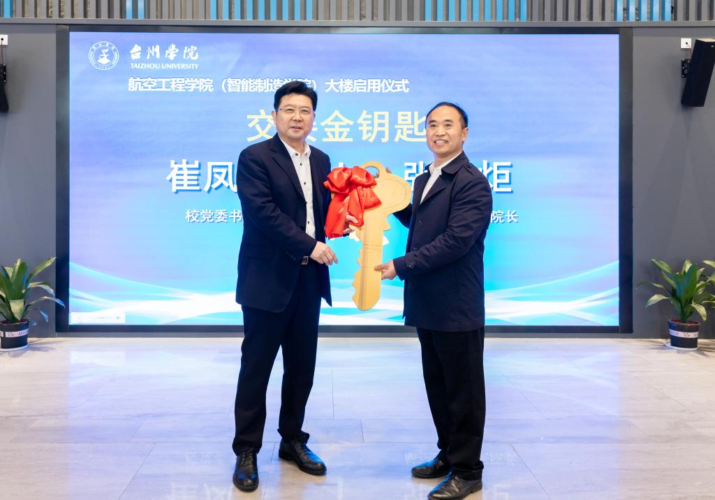 12月10日上午,台州学院航空工程学院(智能制造学院)大楼启用仪式在一楼大厅顺利举行。校党委书记崔凤军宣布航空大楼正式启用,并亲手把金钥匙交给航空工程学院(智能制造学院)院长张永炬。校党委副书记、校长陈光亭,党委委员、副校长赵小明、胡韶光出席仪式。仪式由党委委员、副校长李钧敏主持。