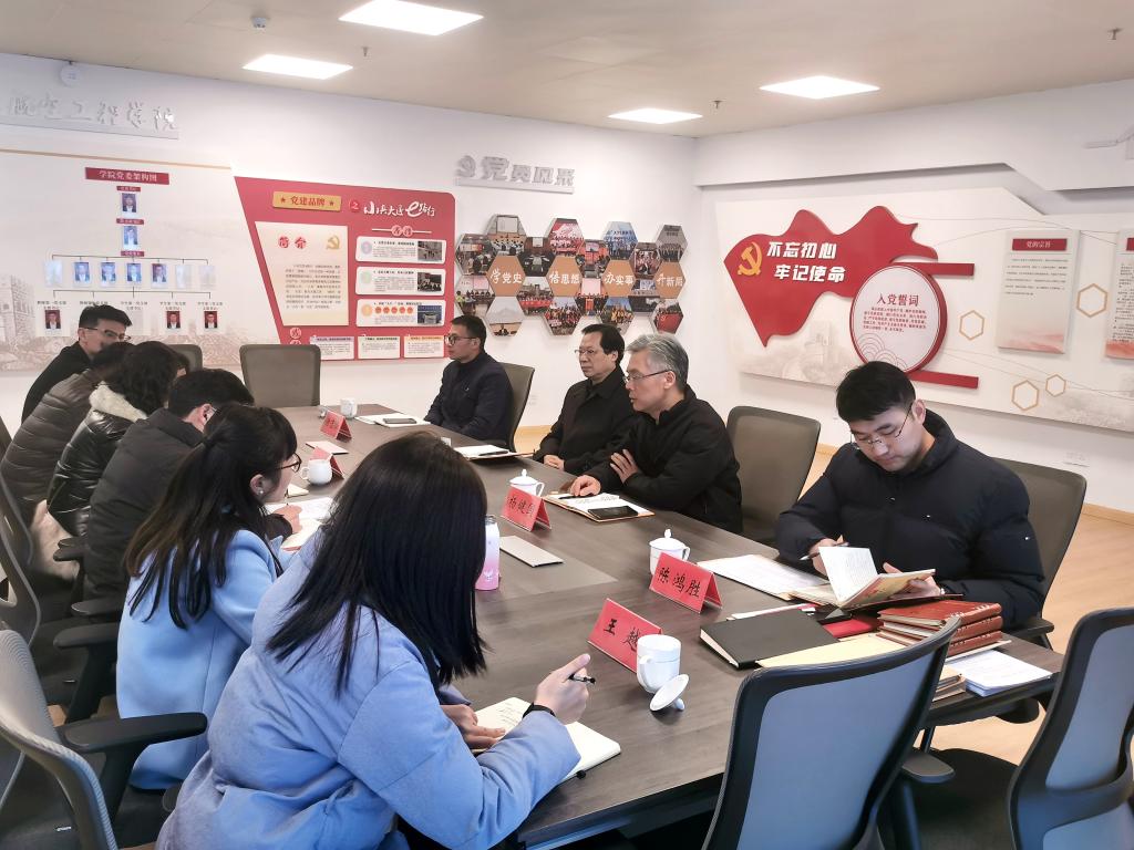 会上,调研组深入检查了学院2021年度党委会会议记录、党政联席会会议记录、“三会一课”记录、党员发展档案等,对存在的问题进行反馈,并就党建工作规范化给出指导意见。