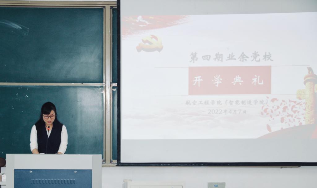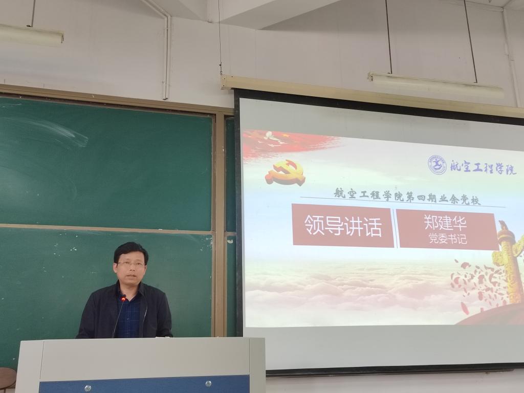 4月7日下午,航空工程学院于2-203教室举行了第四期业余党校开学典礼。党委书记郑建华出席并讲话,党委副书记梅娇主持典礼。学生第二党支部书记钟理韬、学生第三党支部书记盛威、业余党校负责人王越以及180余名入党积极分子参加。