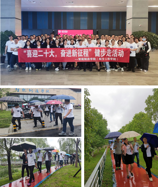 大家在航空大楼大厅集合后活动正式开始,虽然天空下着小雨,参加健步走的80多名教职工精神抖擞,兴致高昂,沿着学校绿道阔步向前,一边呼吸着新鲜的空气,一边进行着生活和工作方面的交流,感受着集体活动带来的愉悦。