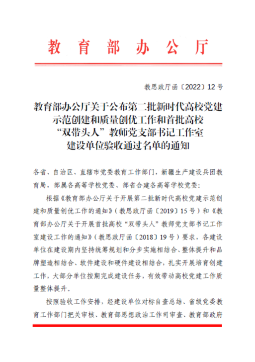 近日,教育部办公厅公布了第二批新时代高校党建示范创建和质量创优工作建设单位验收通过名单,航空工程学院教师第一党支部顺利通过“全国党建工作样板支部”建设单位验收。