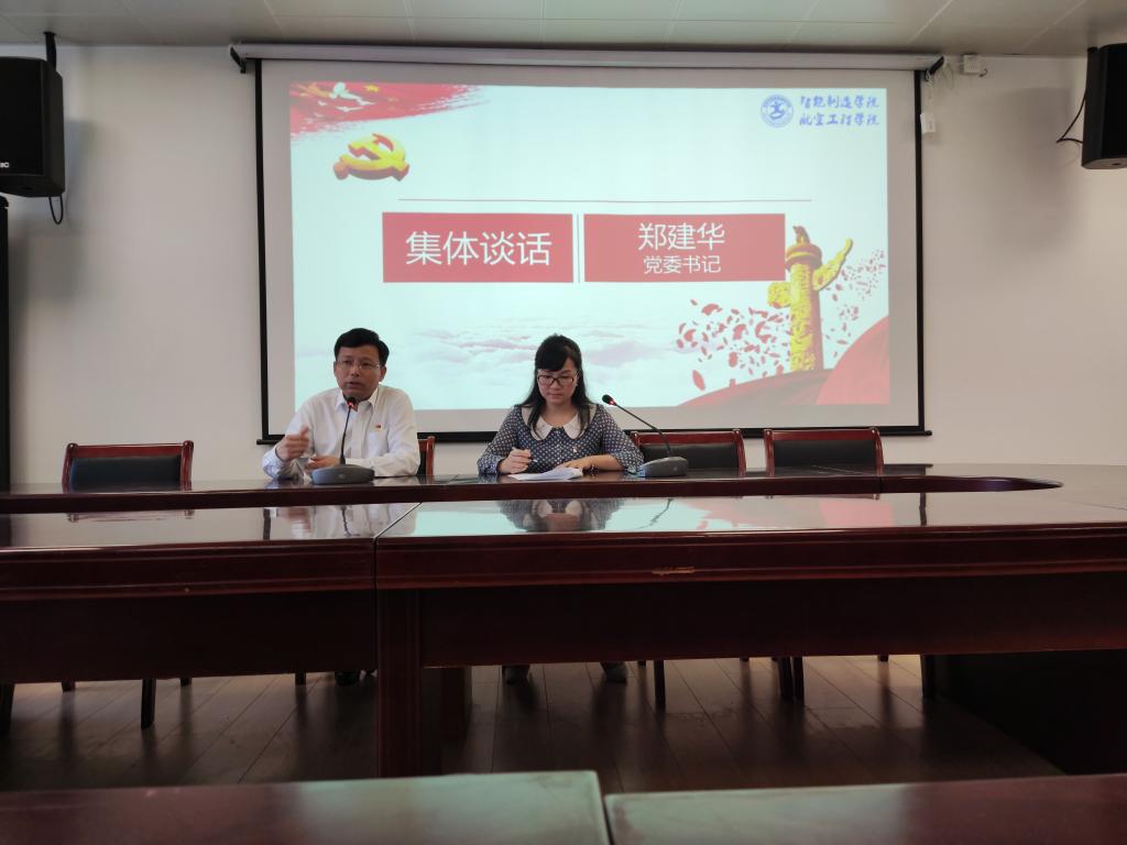 为庆祝中国共产党建党101周年、迎接党的二十大胜利召开,6月23日中午,智能制造学院在航空大楼S510举行党员宣誓仪式暨集体谈话会。学院党委书记郑建华出席并讲话,党委副书记梅娇主持,各学生党支部书记、全体新转正党员与新发展党员参加。