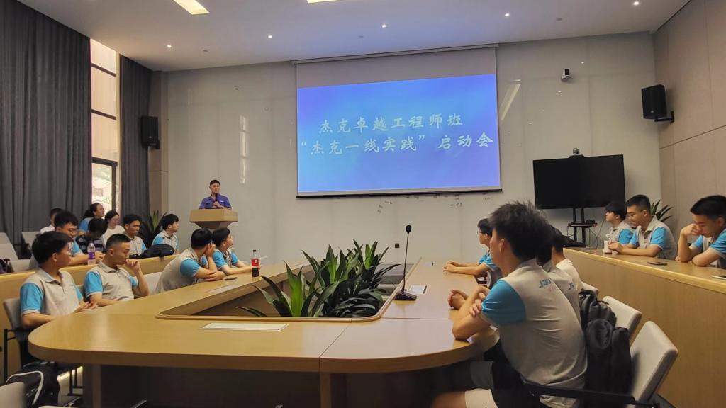 6月27日上午,智能制造学院(航空工程学院)卓越工程师“杰克班”全体学生在副院长张莉、院党委委员林树森、班主任刘文飞、指导教师张任、辅导员周铖杰的带领下,来到杰克科技股份有限公司,开展为期一个月的一线实践活动。