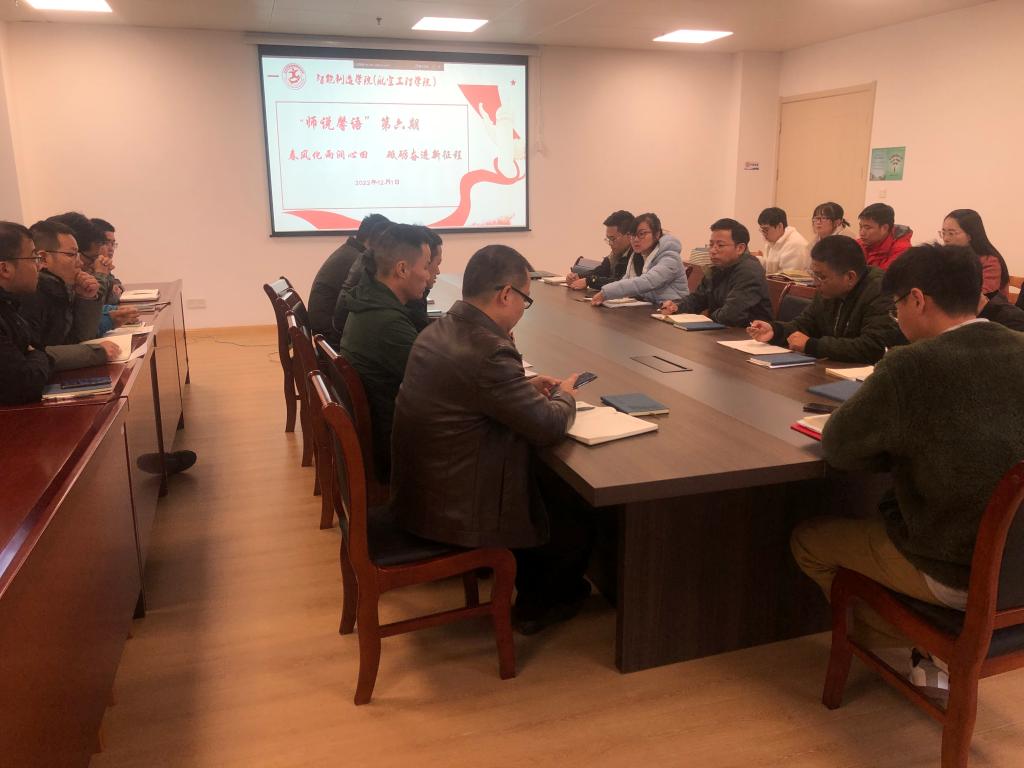 12月1日下午,智能制造学院开展第六期“师说馨语”活动,本次活动以“春风化雨润心田 砥砺奋进新征程”为主题,学院党委书记郑建华出席活动,党委副书记梅娇主持,学院班主任和辅导员参加。