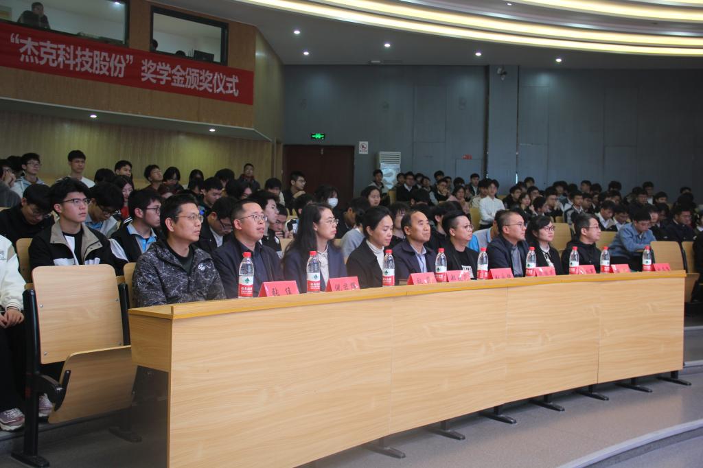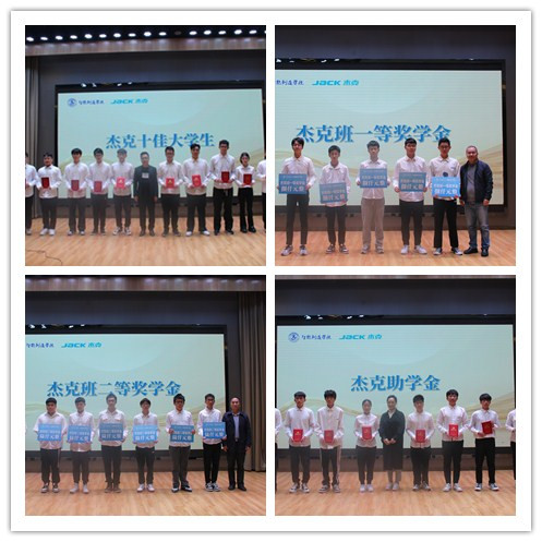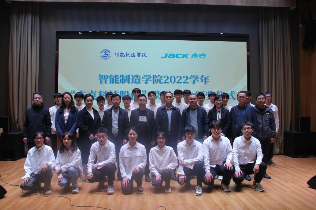 杰克科技股份有限公司是全球缝制设备行业产销规模最大、综合实力最强的全球化企业。公司致力于打造全球缝制设备第一品牌,拥有院士工作站、博士后工作站、省级重点企业研究院,先后被评为制造业单项冠军示范企业、中国工业大奖提名奖、国家企业技术中心、国家火炬计划重点高新技术企业等荣誉称号。杰克科技股份有限公司设立“杰克科技股份”奖助学金,每年给予学院50万元的捐赠,用于奖励智造学院品学兼优的学生。2022学年共评选出了87名获奖者,其中杰克孝心奖4人,杰克十佳大学生10人,杰克助学金24人,杰克班一等奖学金5人,杰克班二等奖学金15人,杰克班三等奖学金20人,杰克班助学金9人。