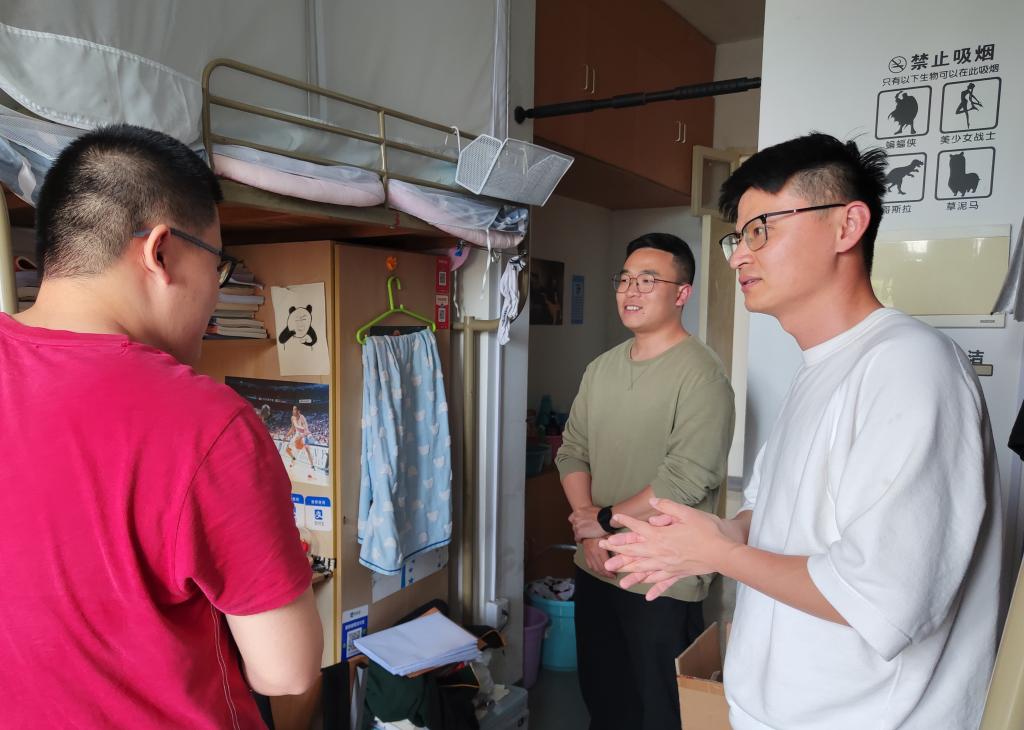 在走访中,辅导员们与同学们亲切交流,询问他们生活、学习和假期安排等情况,他们仔细聆听相互沟通,在了解了学生们对自己学习、生活方面的情后发表自己的看法,并向他们宣传了有关假期安全方面的知识和注意事项,提醒同学们要注意人身、财产安全。此外,辅导员还对学生宿舍内的内务情况提出建议,旨在打造一个良好的寝室环境。学生们十分感激辅导员的关爱之心,走访进行得十分融洽。