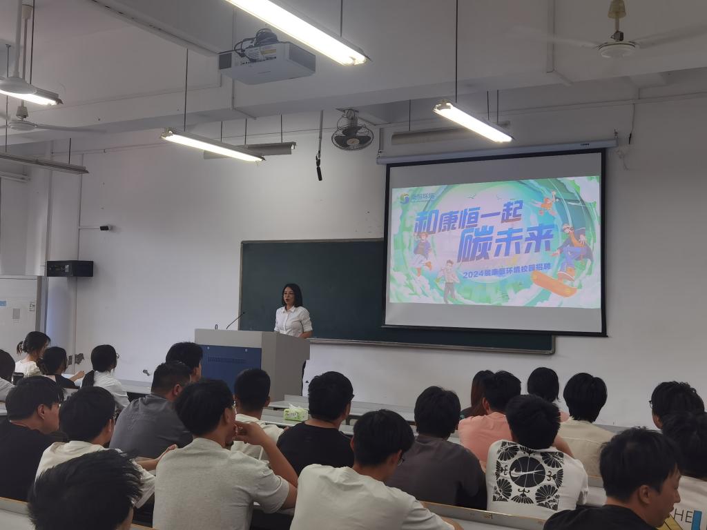 宣讲活动中,倪宝珠经理从用人单位的视角出发,分析了当前就业形势和大学生就业现状,详细介绍了康恒环境的企业文化及康恒环境黄岩项目的基本情况,从岗位需求、工作内容、薪酬体系和成长路径四个方面介绍了公司的招聘和晋升体系,并鼓励同学们及时了解招聘市场趋势,找准定位,积极投递简历。