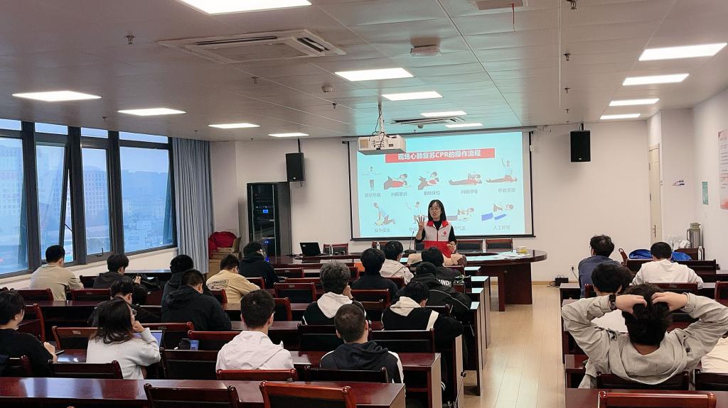 培训过程中,张宁老师以其丰富的专业知识和生动的讲解,为同学们系统梳理了在校园及日常生活中可能遇到的各类紧急情况。课程内容紧扣实际,重点涵盖了心肺复苏(CPR)的操作流程、自动体外除颤器(AED)的使用方法、气道异物梗阻的急救(海姆立克急救法)以及创伤止血包扎等关键技能。