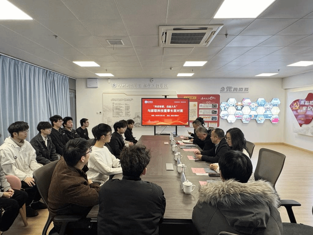 12月13日,智能制造(航空工程)学院2025年“家联班”座谈会在航空大楼S531举行。本次座谈会以“共话家联,启迪人生——与家联科技董事长面对面”为主题,邀请宁波家联科技股份有限公司董事长王熊莅临现场,与学院师生展开深入交流。学院党委书记李友富主持会议,副院长倪君辉、学工办主任刘湘、辅导员张益伟、黄洛佳及“家联班”全体学生共同参会。