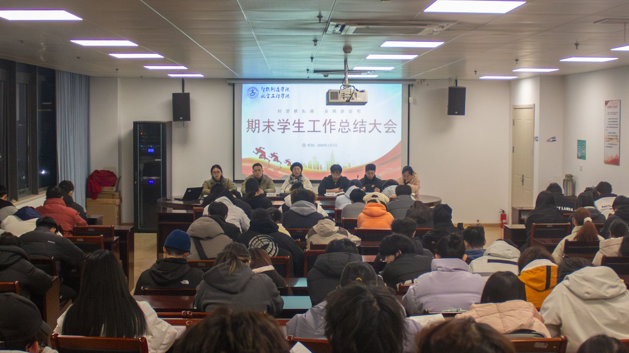 为系统总结学期工作成果、凝聚学生骨干奋进力量,1月7日下午,智能制造(航空工程)学院在航空楼S510会议室召开期末学生干部工作总结大会。学院全体辅导员出席,主要学生干部共一百余人参加会议,会议由学工办主任刘湘主持。