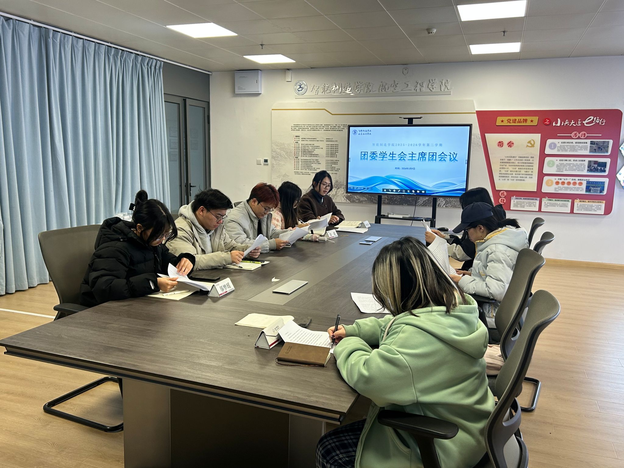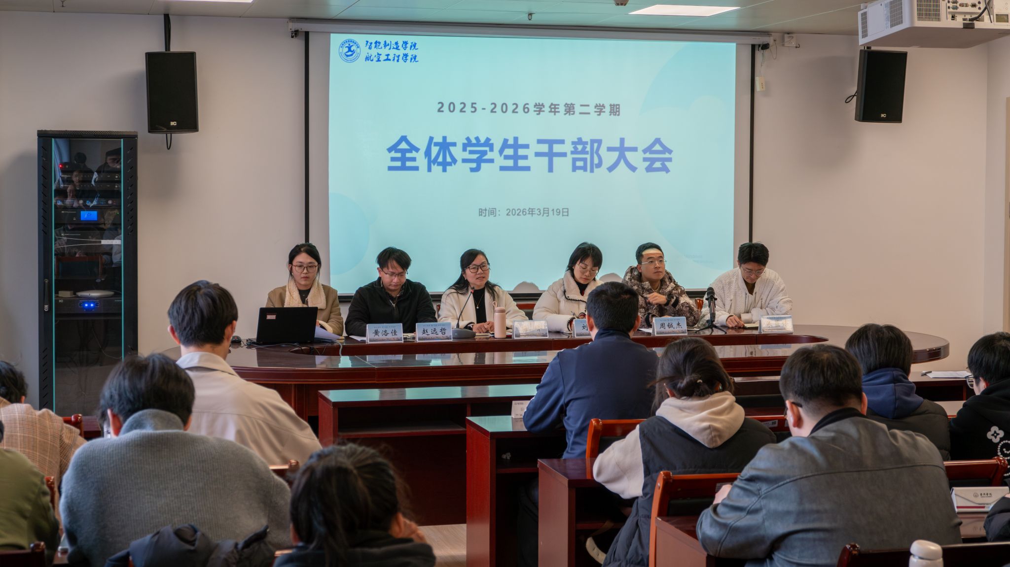 3 月 11 日,学院在航空大楼 531 会议室召开 “开学第一课” 暨团学骨干工作会议。分团委书记黄洛佳部署新学期重点工作,要求团学干部强化政治理论学习,密切关注 2026 年全国两会动态,发挥“领头雁”作用。她勉励大家科学规划学业、夯实专业基础,时刻绷紧安全稳定之弦,以过硬作风与责任担当,为学院各项工作平稳有序开展提供有力保障。