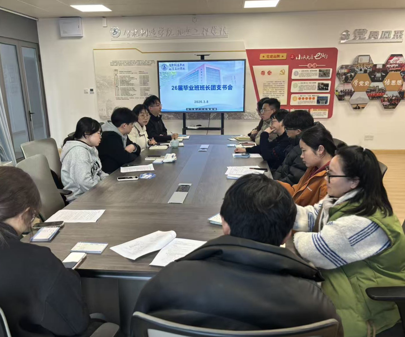 3 月 15 日,辅导员刘湘、赵远哲、周铖杰、黄洛佳召开毕业班工作专项会议。会上,几位辅导员围绕毕业班重点工作进行部署,深入分析当前就业形势与相关政策,鼓励同学们积极把握春招关键时期,理性调整就业预期,以良好心态主动求职。此次会议进一步明晰了毕业班工作方向,为有序推进毕业生就业服务、护航学生顺利毕业就业奠定了基础。