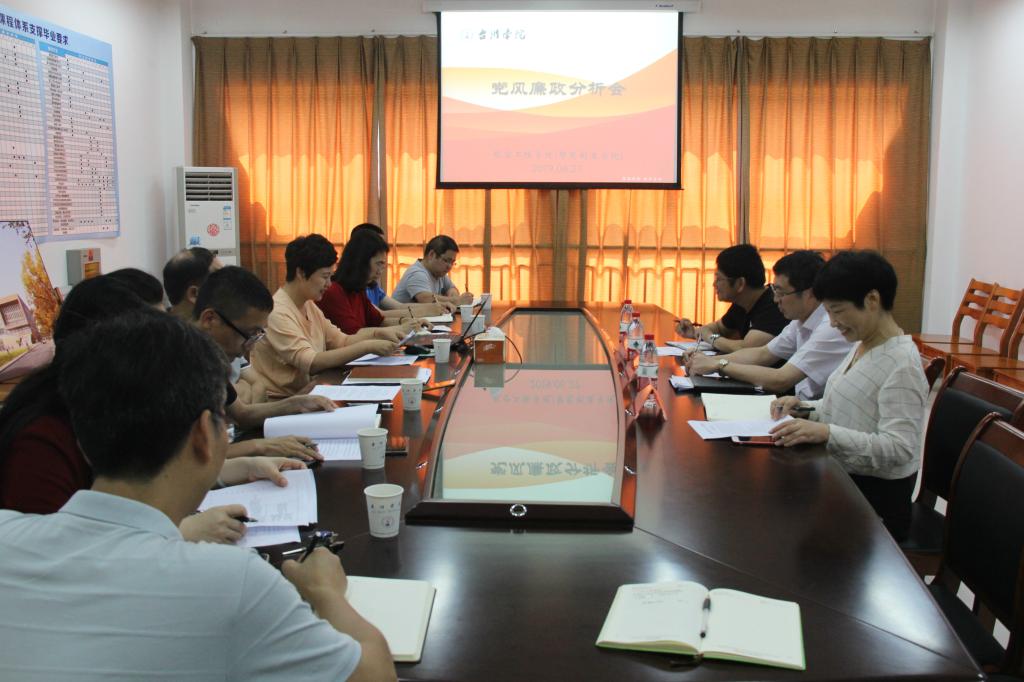 6月27日下午,航空学院召开2019年上半年党风廉政建设情况分析会。副校长赵小明,校纪委委员、学生处处长张梅芬等应邀出席会议并作指导;学院领导班子成员、党总支委员、系室主任、党支部书记参加;学院党总支书记徐元红主持会议。