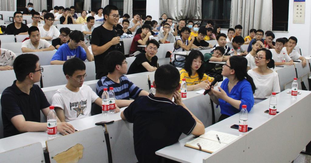 交流会上,16级考上研究生的同学们分享了自己的考研经验和体会,在专业考研学校选择、时间规划、备考策略、备考资料、调剂具体流程、考研所要具备心理素质以及考试技巧等方面进行了深入细致的讲解。他们还不时勉励在座的同学,要加强专业知识的学习,积极参加竞赛,这样才能丰富自己的简历。在互动交流环节,大家交流热烈,考取研究生的同学逐一且详细地解答了同学们提出的问题。