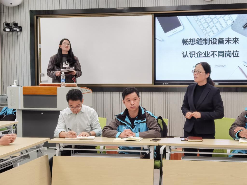 本次活动以“畅想缝制设备未来,认识行业不同岗位”为主题,陈经理为本次座谈会作了简单而生动的开场白后,人力资源部的学姐带领杰克班的同学做自我介绍以及趣味游戏,让本次活动显得轻松而亲切,也打开了杰克班同学们的话匣子。